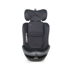 Giro 360º. Dispone de cojín trasero para evitar el choque con el asiento delantero en caso de impacto. El cabezal tiene diferentes posiciones para que se adapte a la altura del bebé desde los 40cm hasta los 150cm. Instalación con isofix, top tether y el arnés de la silla de 40-105cm. A partir de los 105cm instalación con isofix y cinturón del automóvil.