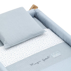 La minicuna amb estructura en forma d'aspa de Cambrass està fabricada en fusta de faig. Permet el descans del bebè en qualsevol estada de la casa durant els primers mesos de vida gràcies a la mobilitat que li aporten les rodes (amb fre).Altres aspectes que fan especialment funcional aquesta minicuna, inclou coixí, matalàs i somier de fusta de 5mm, suport de fusta i la seva vestidura cosida que inclou el cobertor amb farciment extraïble per a la seva rentada o per a l'ús hivern / estiu.. Per recomanació de la normativa Europea (EN 1130 UNE-EN 11890:2018) i del reial decret 1801/2003 sobre la seguretat general dels productes, la minicuna no pot ser plegable. Segons normativa, aquest producte suporta bebès amb un pes de fins a 14 kg