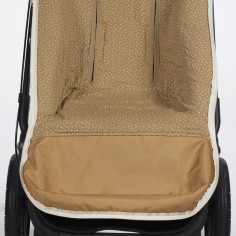 La funda de silla para bebé Poppy Canela de topitos está fabricado con un tejido de 100% algodón reciclado. Es la funda ideal para cubrir la base de la silla de paseo y viene provista de saco para arropar a tu bebé. Con este saco tu bebé estará cómodo durante los meses de primavera y de otoño. Trasera con material anti-sudoración que evita la sudoración excesiva del bebe. Relleno extraíble. Su esquema dispone de varias aperturas (ojales) y ajustes con los que se te hará más fácil adaptarla a la mayoría de los cochecitos, convirtiendo el paseo de tu bebé seguro y confortable. Está elaborado con un material resistene y cálido. Cuenta con una base de poliéster en el reposapiés que facilita la limpieza posterior a su uso. Es un diseño bonito, simple y cómodo que crea un nido para tu bebé mant