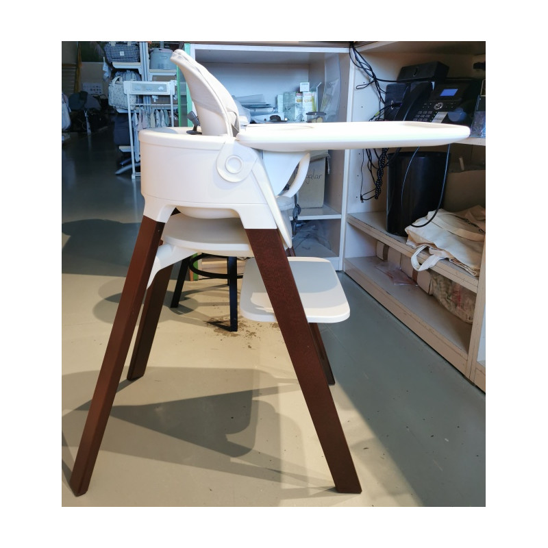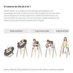 ÚLTIMA UNIDAD EN ESTOC!! PACK OFERTA TRONA STEPS DE STOKKE BABYSET Y BANDEJA EN BLANCO ESTRUCTURA EN NOGAL Y BLANCO COJÍN EN A ESCOGER* ENTRE GRIS O ROSA