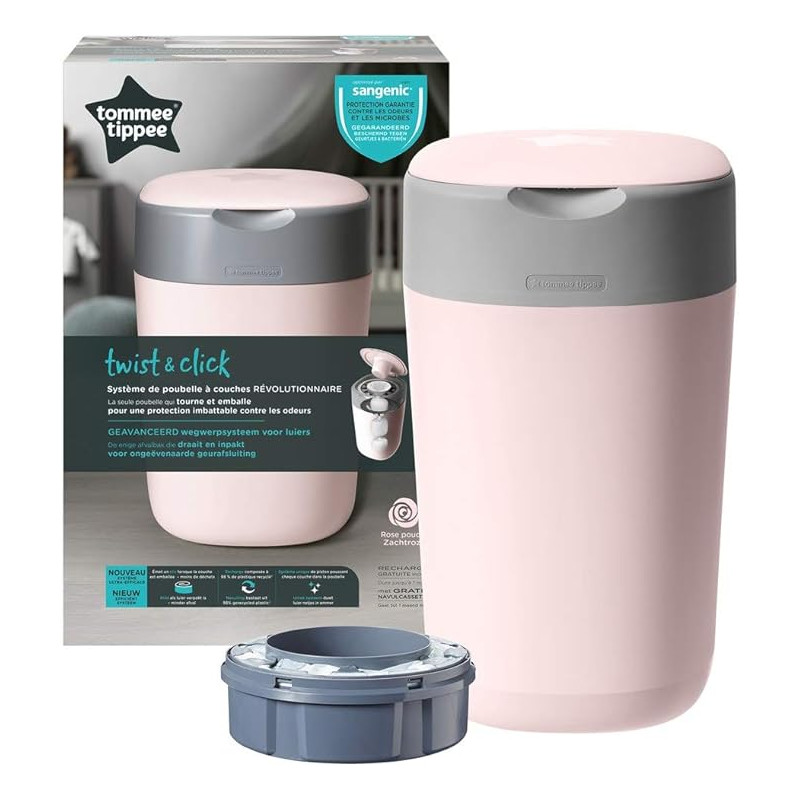 Deshacerte de los pañales nunca fue tan sencillo El contenedor de pañales Sangenic es el único que envuelve cada pañal por separado, lo que aísla los olores y acaba con el 99 % de los gérmenes gracias a la película GREENFILM™ orgánica. Estos contenedores compactos están disponibles* en cuatro atractivos colores y tienen capacidad para hasta 28 pañales*. *Pueden variar *Tomando como referencia pañales del tamaño 1: 2-5 kg.