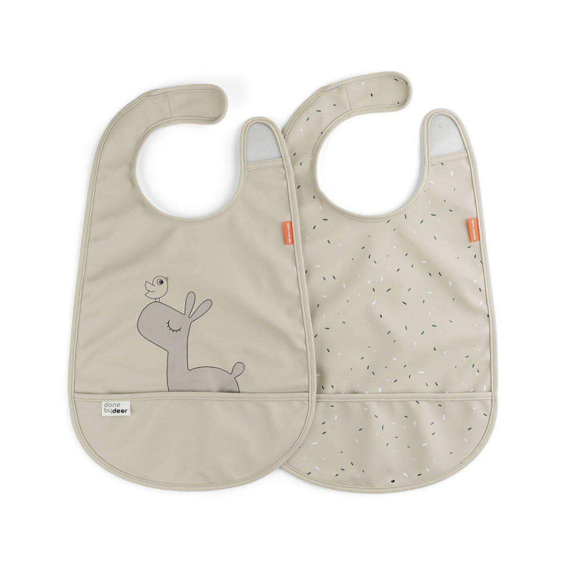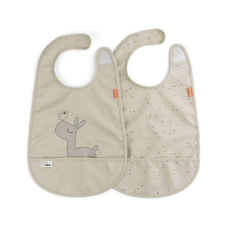 Tu amigo ciervo está listo para hacer que la hora de comer sea menos complicada con este práctico juego de dos baberos con velcro impermeables que son fáciles de limpiar y con un bolsillo inteligente para recoger la comida que falta. Este juego le ahorrará mucho tiempo de limpieza. Los baberos blandos tienen un cierre de velcro que hace que los baberos sean muy fáciles de poner y quitar. Los lindos baberos tienen un suave tono arena. Uno está decorado con Lalee y Birdee y el otro está cubierto con Happy dots en colores suaves.