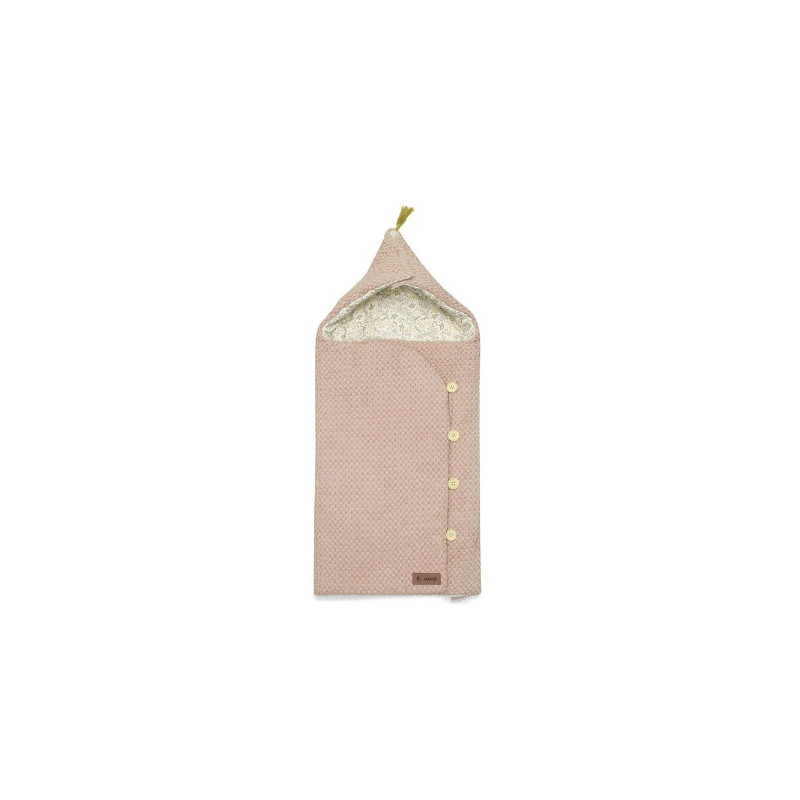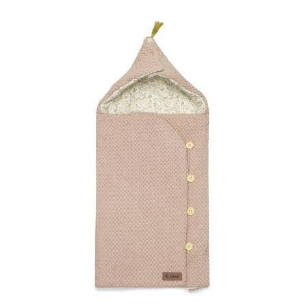 Suave tejido de algodón elástico en el exterior con un acolchado muy cálido y confortable. Capucha: Dispone de capucha desmontable para proteger la cabecita del bebé del frío sin reducir su ángulo de visión. Cierre: Con botones para abrirlo por un lateral y cremallera en los pies para evitar que se desarrope y/o le entre aire. Versátil: Apto para capazo y portabebé con ojales para el paso de los arneses.