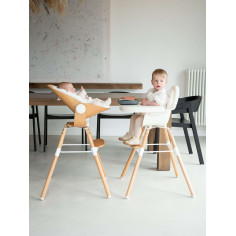 Trona con diseño original belga. Ganador de numerosos premios internacionales. Para niños de 6 meses a 6 años Adecuado para una mesa estándar (75 cm) y una mesa infantil (50 cm). Ampliable con numerosos accesorios