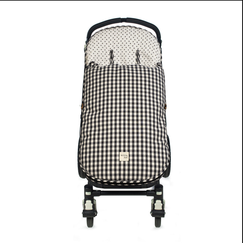 La funda de silla para bebé Remy en cuadro vichy XL negro, es la funda ideal para cubrir la base de la silla de paseo y viene provista de saco para arropar a tu bebé. Con este saco tu bebé estará cómodo durante el paseo. Trasera con material anti-sudoración que evita la sudoración excesiva del bebe. Relleno extraíble. Su esquema dispone de varias aperturas (ojales) y ajustes con los que se te hará más fácil adaptarla a la mayoría de los cochecitos, convirtiendo el paseo de tu bebé seguro y confortable. Está elaborado con un material resistene y cálido. Cuenta con una base plastificada en el reposapiés que facilita la limpieza posterior a su uso. Es un diseño bonito, simple y cómodo que crea un nido para tu bebé manteniéndolo arropado y protegido. El saco se adapta sin problemas a cualquie