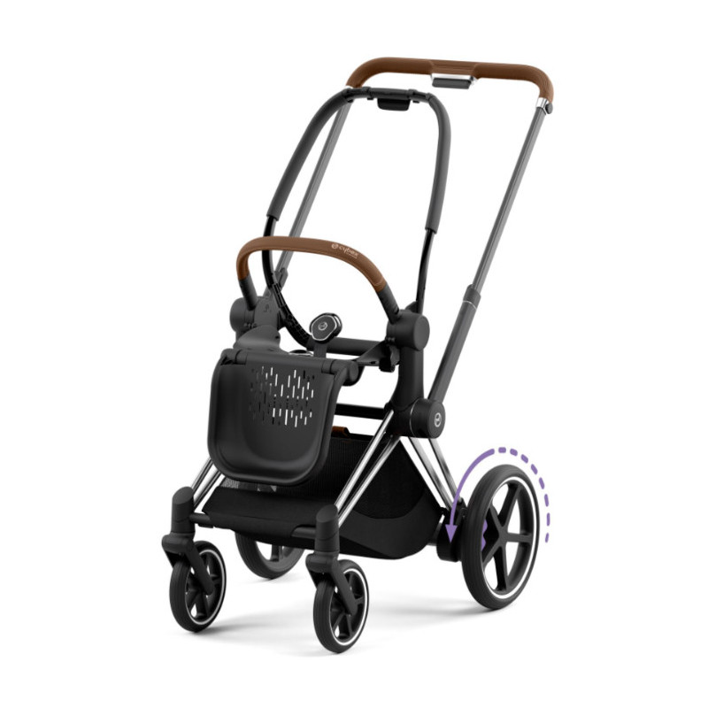 El chasis e-Priam es el punto de encuentro entre la tecnología inteligente y el diseño atemporal. Combínalo con un pack de asiento Priam, un capazo Priam Lux o una silla de coche portabebés CYBEX para disfrutar de asistencia en pendientes y una función de balanceo (los productos individuales se venden por separado).