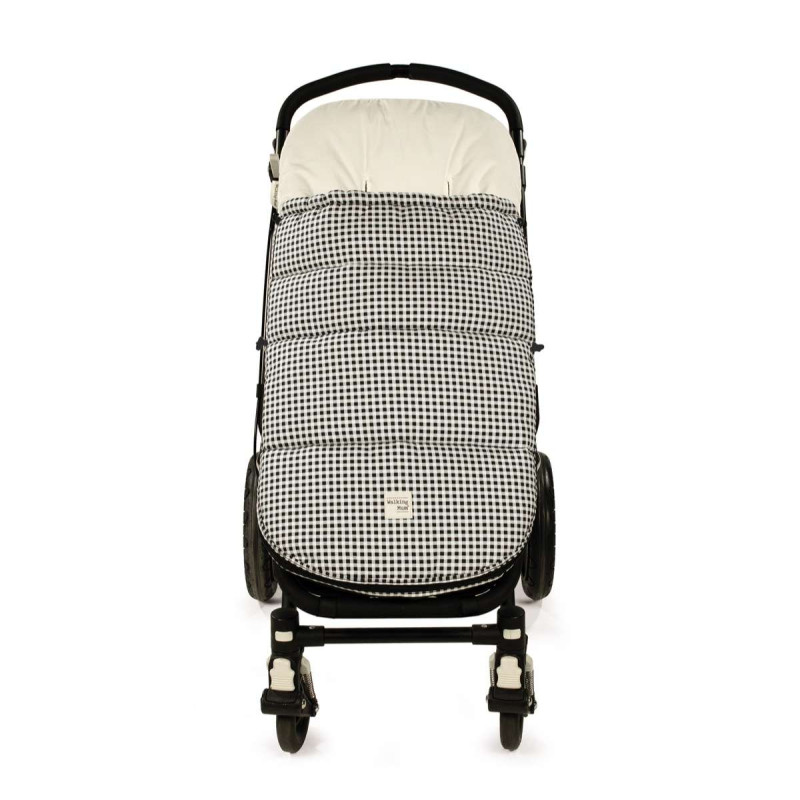 La funda de silla para bebé I love vichy negro, es la funda ideal para cubrir la base de la silla de paseo y viene provista de saco para arropar a tu bebé. Su esquema dispone de varias aperturas (ojales) y ajustes con los que se te hará más fácil adaptarla a la mayoría de los cochecitos, convirtiendo el paseo de tu bebé seguro y confortable. Está elaborado con un material resistene y cálido. Cuenta con una base plastificada en el reposapiés que facilita la limpieza posterior a su uso. Es un diseño bonito, simple y cómodo que crea un nido para tu bebé manteniéndolo arropado y protegido en días de frio. El saco se adapta sin problemas a cualquier coche y le permite disfrutar de un descanso más agradable con la forma acogedora que tiene de nido.Gran calidad y mucho estilo.
