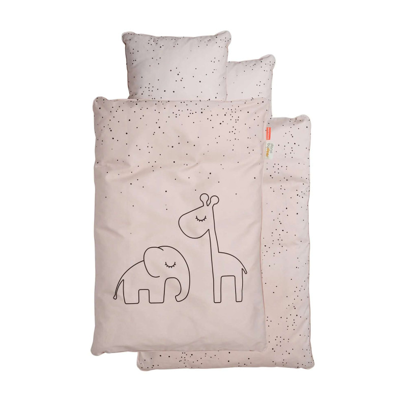 Estoy hecho de: 100% algodón. Funda nórdica y funda de almohada con cremallera oculta de seguridad. Certificado Oeko-Tex. Este producto está certificado según OEKO-TEX® STANDARD 100 en el HOHENSTEIN Textile Testing Institute. Número de certificado 15.HTR.57912. Soy así de grande: Edredón: 100 x 130 cm - Almohada: 38 x 55 cm Cómo cuidarme: Lavable a 60°C. No secar en secadora.