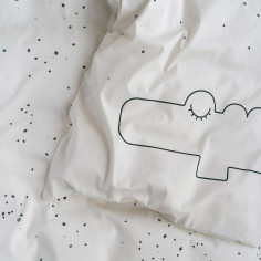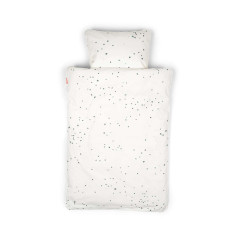 Estoy hecho de: 100% algodón orgánico con cremallera oculta. Este producto tiene certificación GOTS®. Este producto está certificado según OEKO-TEX® STANDARD 100 en el HOHENSTEIN Textile Testing Institute. Número de certificado 15.HTR.57912. Soy así de grande: Edredón: 70 x 100 cm - Almohada: 40 x 45 cm Cómo cuidarme: Lavable a 60°C. No secar en secadora.