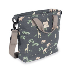 Bolso cambiador Baobab en estampado sabana para silla de paseo que incluye cambiador para bebe. Bolsa canastilla muy ligera, resistente y de gran capacidad para llevar todo lo necesario para el paseo del bebe. Tiene multiples bolsillos para poder tener todo ordenado y a mano. La bolsa tiene un sistema universal de fijación, con 2 asas cortas ajustables que facilita la colocación en cualquier modelo de silla de paseo. También incorpora una asa larga para poder colgarla en el hombro y asas cortas de mano. Gran calidad y mucho estilo