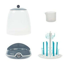 Elimina el 99 % de las bacterias más resistentes Esteriliza a fondo los biberones en 6 minutos Gran capacidad: 6 biberones y accesorios Universal: compatible con todo tipo de biberones, sacaleches, vajillas... Escurre biberones con boquillas de vapor extraíbles Parada automática y alarma sonora de final del ciclo