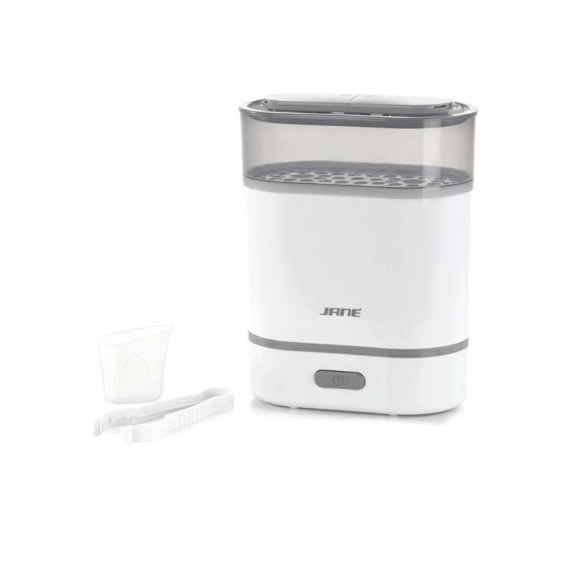· Capacidad: 6 biberones estándard o 6 biberones boca ancha y sus accesorios. · Es multifunción gracias a sus diferentes modos de uso: esterilizador y calientabiberones. · Funciona mediante vapor sin la adición de ningún tipo de sustancia química. · Incluye pinza y dosificador de agua. Medidas del producto 30 x 17 x 34 cm.