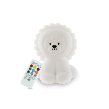 Las lámparas quitamiedos son de silicona 100% lavable, tamaño perfecto para el niño. Esta luz nocturna sin batería, con batería recargable mediante el cable USB suministrado, tiene una autonomía mínima de 10 horas. Además del blanco, esta luz de noche se ilumina en otros 8 colores a elegir, que se pueden cambiar, ya sea tocando la luz de noche o con el pequeño mando a distancia que se incluye. El mando a distancia también permite regular la intensidad de la luz, pero también el temporizador, si es necesario, para que la luz nocturna se apague sola al cabo de 15, 30 o 60 minutos