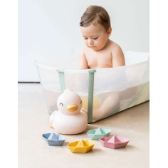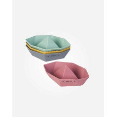 ¡Todos a bordo! Este set de barquitos de silicona premium está preparado para surcar los siete mares con tu bebé. Gracias a su divertido diseño inspirado en el arte del origami y sus preciosos colores la diversión está garantizada. ¡Listos para jugar en la bañera o piscina y hacerlos flotar al ritmo de las olas!