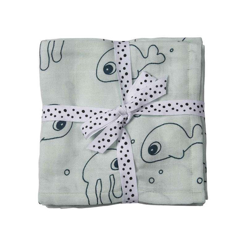PACK 2 MUSELINES SEA FRIENDS BLUE DONEBYDEER