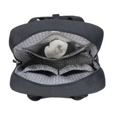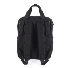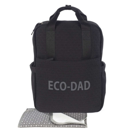 Mochila Eco Dad negra, la mejor manera de llevar todo lo que necesitas para cuidar de tus hijos. La mochila Eco Dad para papás fabricada con rPET (poliéster reciclado post-consumo) es la opción perfecta para ti. El rPET que utilizamos está hecho de plástico PET reciclado de botellas de agua. El uso de este material reduce el consumo de agua, el consumo de energía y la emisión de CO2. Tiene un diseño espacioso que puede acomodar todo lo que necesitas para cuidar de tus bebés, como pañales, toallitas húmedas, biberones, juguetes, etc. También cuenta con múltiples bolsillos y compartimentos para que puedas organizar tus cosas fácilmente. Dispone de dos bolsillos laterales exteriores para biberones o botellas y uno frontal con cierre de cremallera.