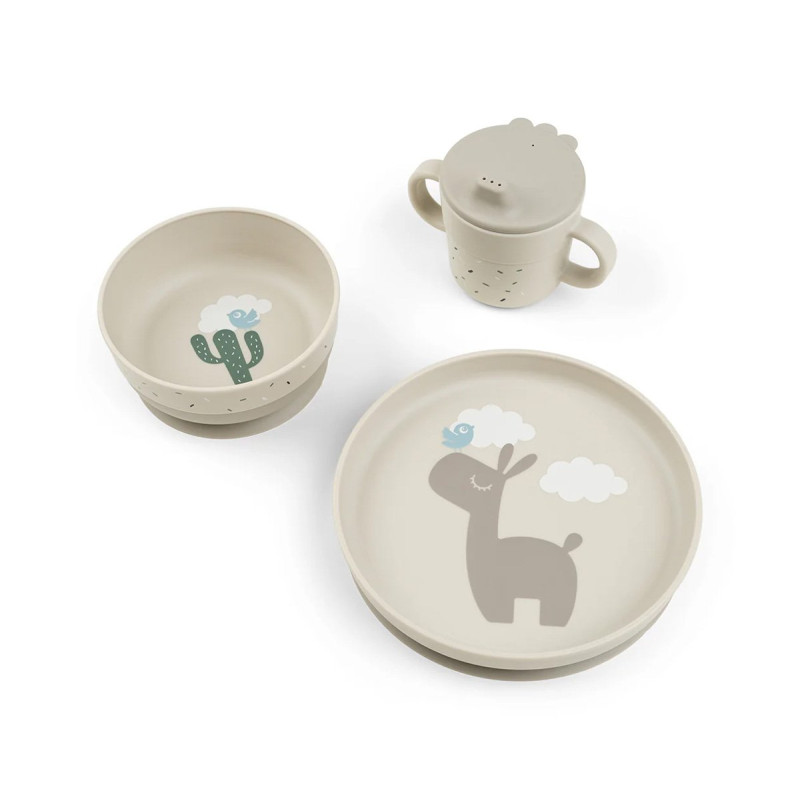 Deje que su pequeño comensal disfrute de una comida de este lindo y práctico juego de vajilla Foodie. Su divertido estampado aportará alegría a cada comida. El borde alto del plato y del cuenco y la práctica base de succión Stick & Stay ayudarán a su hijo a comer solo. La vajilla está diseñada para el día a día con niños y es apta para lavavajillas y microondas. Una vez que la vajilla ha cumplido su función en innumerables cenas familiares, se puede clasificar como plástico y reciclarla para convertirla en nuevos productos de la vida cotidiana. La vajilla de color arena tiene un bonito estampado. El plato tiene un motivo de Lalee y Birdee y el cuenco tiene un motivo de Birdee sobre un cactus. Se ha esparcido confeti sobre el recipiente y el vaso con boquilla de dos asas.