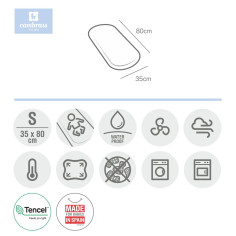 La sábana ajustable confeccionada con fibras de TENCEL ™ es impermeable y transpirable (para moisés o carro) de Cambrass, funciona como una práctica bajera. Fabricado en España. Por Cambrass.