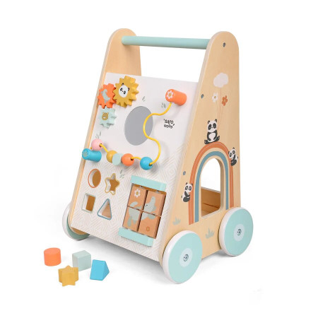 ¡Camina, explora y diviértete! Este divertido andador multi-actividad será el compañero perfecto para tu pequeño cuando esté listo para dar sus primeros pasos. Además de fomentar el caminar, desarrollar el equilibrio y las habilidades motoras, incluye 7 actividades divertidas para desarrollar habilidades motoras finas. Sus ruedas tienen un revestimiento de goma que no deja marcas en casa, además de evitar deslizamientos, ¡son muy seguras!