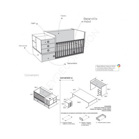 *Por defecto la barandilla siempre vendrá el blanco. Lacada en otro color +40 puntos.