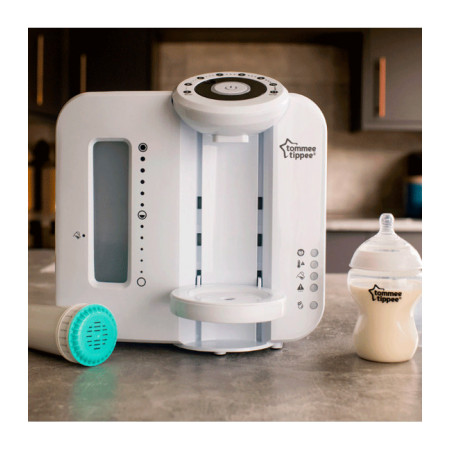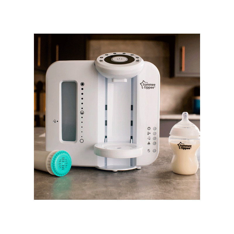 Todo es más fácil con el preparador de biberones Perfect Prep de color blanco de Tommee Tippee, el robot que te prepara el biberón de tu bebé en 2 minutos con la temperatura ideal. Mientras dedicas tiempo al peque el Robot se encarga de preparar el biberón y además sin ningún grumo.