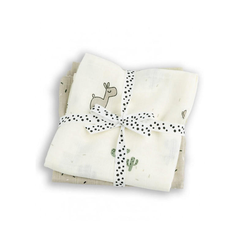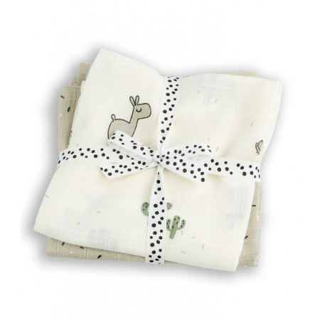 Un juego de dos pañales decorados con el lindo estampado Lalee con la llama Lalee, Birdee y cactus. Los pañales de muselina orgánica con certificación GOTS son cómodos, transpirables y lindos: un bebé esencial para cada nuevo padre. Utilice los pañales para imitar el entorno seguro desde el útero de la madre y evitar que el bebé agite los brazos y las piernas y se despierte durante la hora de la siesta. Envolver a tu bebé en un pañal grande con Lalee lo hará sentir cómodo y tranquilo. Un lindo conjunto de pañales en tonos arena. Los pañales se pueden lavar a 60 °C y se suavizan más con cada lavado. El acogedor aspecto de gofre que obtienen después del lavado es una cualidad natural del material.